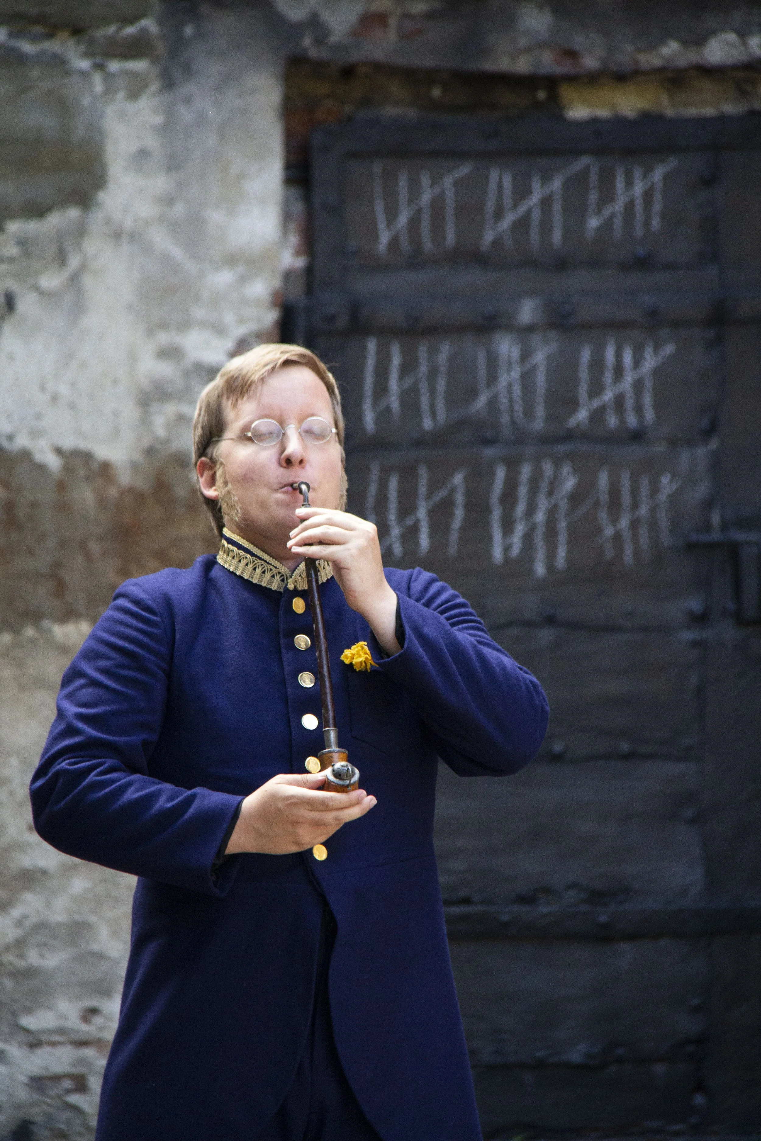 WERGELAND ER TILBAKE: I vandreteatret “Årringer i stein” tar Henrik Wergeland publikum med på en reise gjennom festningens over 700 år lange historie. FOTO: Mette Amblie Haugland/SAKK